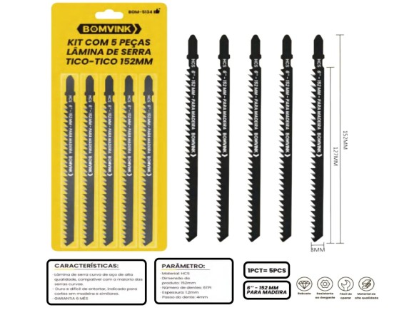 CONJUNTO LAMINA DE SERRA TICO TICO COM 5 PCS 152MM BOM-5134