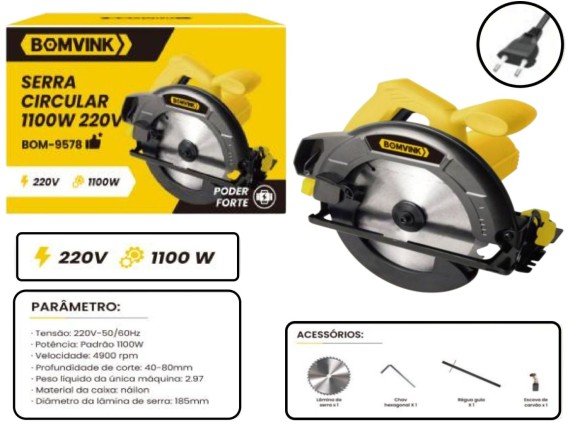 SERRA CIRCULAR ELETRICA 220V 1100W 185MM 7" BOM-9577