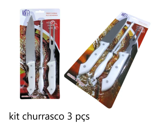 KIT CHURRASCO 3 PÇS FACA, GARFO, CHAIRA BBQ-001