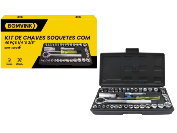 KIT FERRAMENTAS MALETA BASICAS SOQUETES C/ 40PÇS BOM-3906