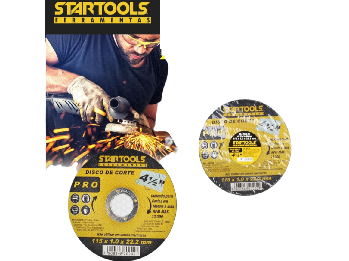 DISCO DE CORTAR AÇO-FERRO 115 X 1.0 X 22.2 MM COM 10 PCS AR0134