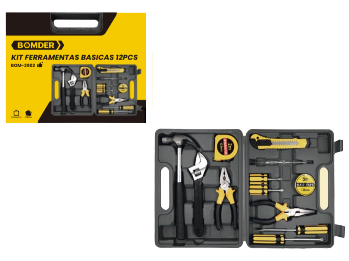 KIT FERRAMENTAS MALETA BASICAS COM 12 PCS BOM-3902