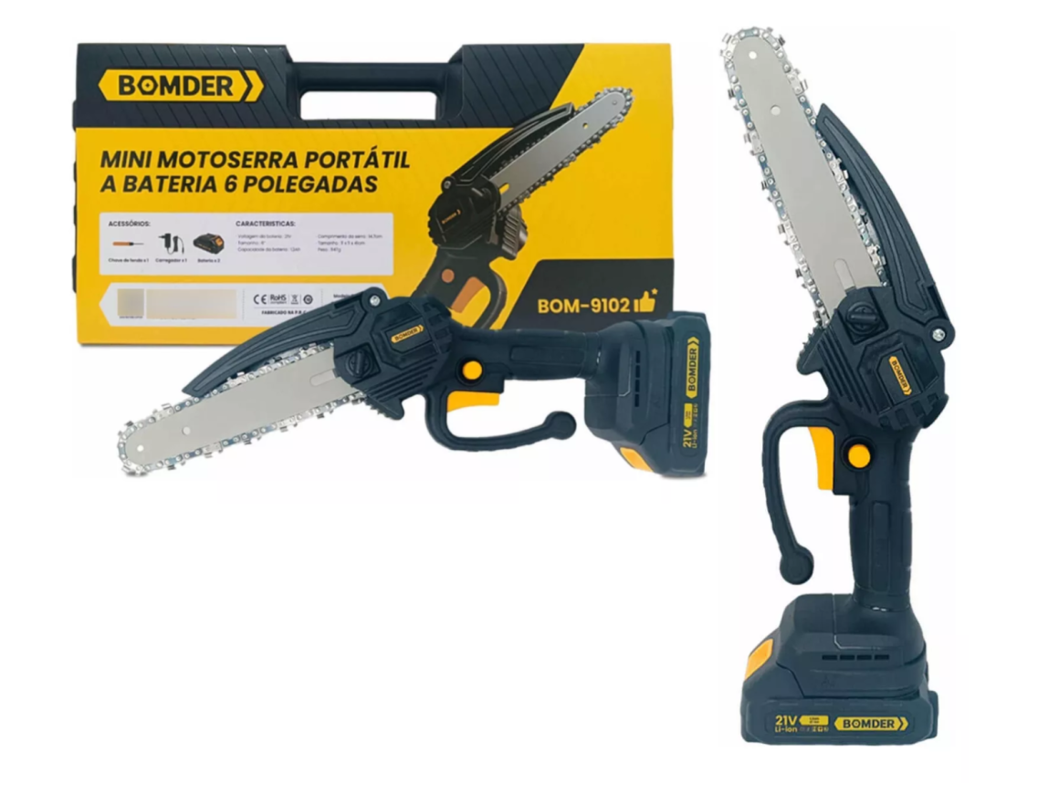 MINI MOTOSSERRA NA MALETA 6" RECARREGAVEL C/2 BATERIAS 21V BOM-9102