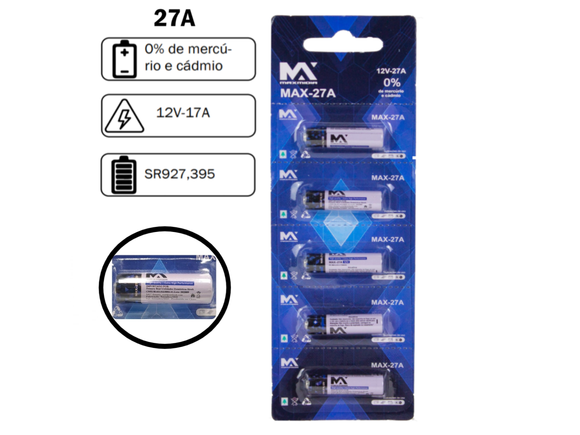 BATERIA 27A 12V CARTELA C/ 5 MAX-27A