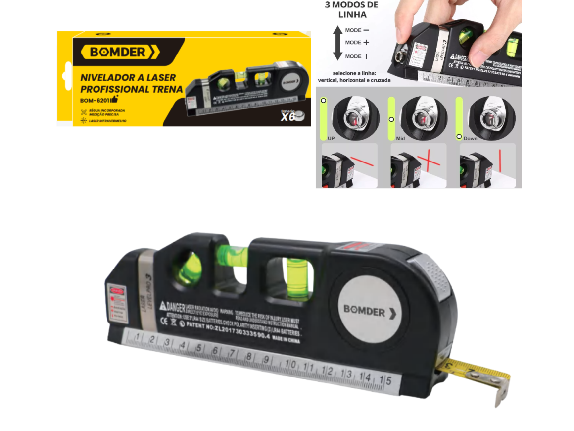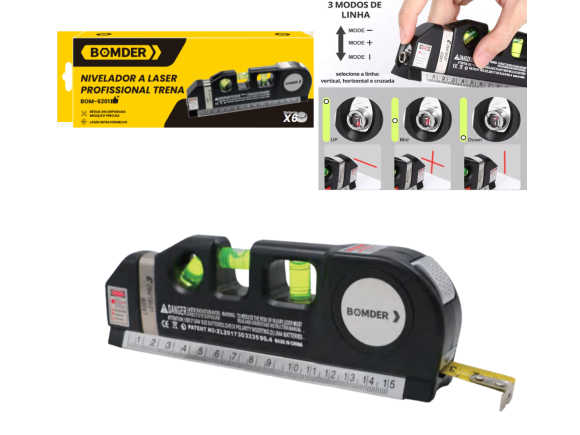 NIVEL A LASER PROFISSIONAL C/ TRENA DE 2,5 METROS BOM-6201