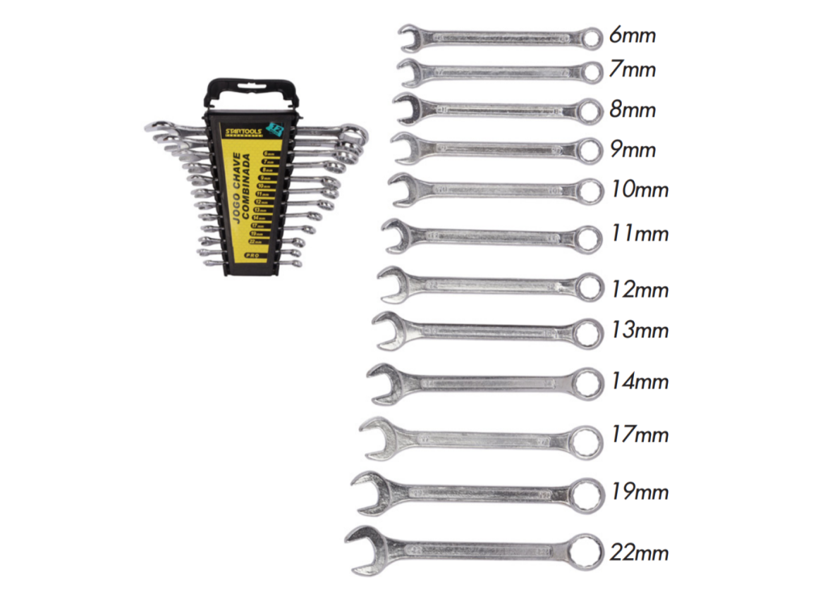 JOGO CHAVE DE BOCA COMBINADA C/12 PÇS 6,7,8,9,10,11,12,13,14,17,19,22 MM AR0708