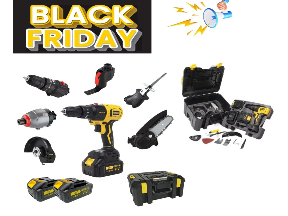 O Kit Multifuncional Acompanha, Parafusadeira, Esmerilhadeira, Motosserra, Lixadeira, Serra Ocilante, Serra Sabre com Bateria de 21v é a ferramenta perfeita para profissionais que buscam praticidade e versatilidade em suas atividades. Com diversos acessórios incluídos, como mandril, serra, etc. você terá tudo o que precisa em um único kit.