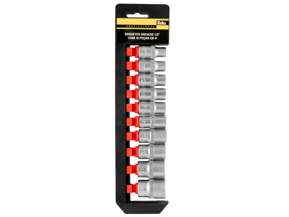 KIT FERRAMENTAS SOQUETES ENCAIXE DE 1/2" COM 10 PÇS CR-V EDA OLJ 018818