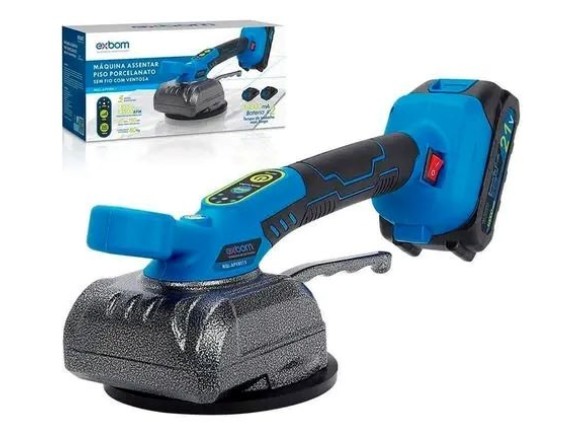 MAQUINA DE ASSENTAR PISO COM VENTOSA RECARREGAVEL C/2 BATERIAS 21V EXBOM APV8015