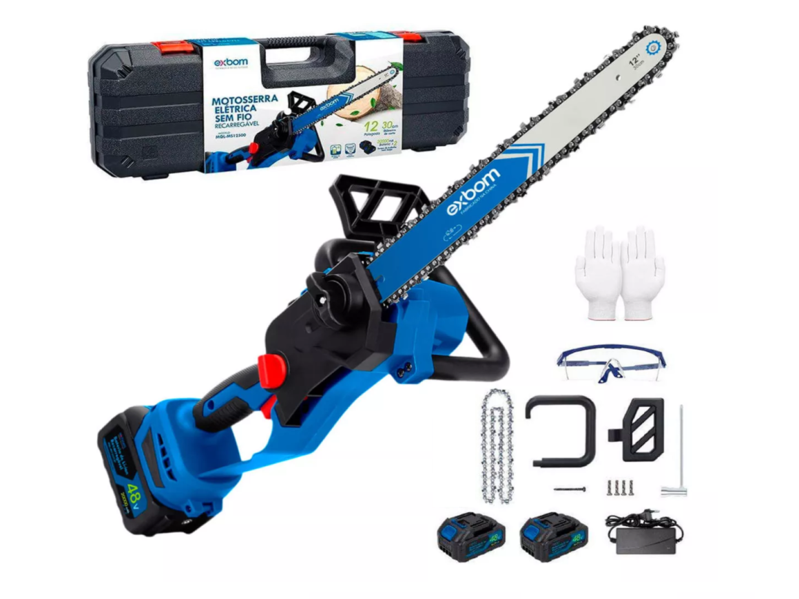 MINI MOTOSSERRA NA MALETA 12" RECARREGAVEL C/2 BATERIAS 48V EXBOM MS12500