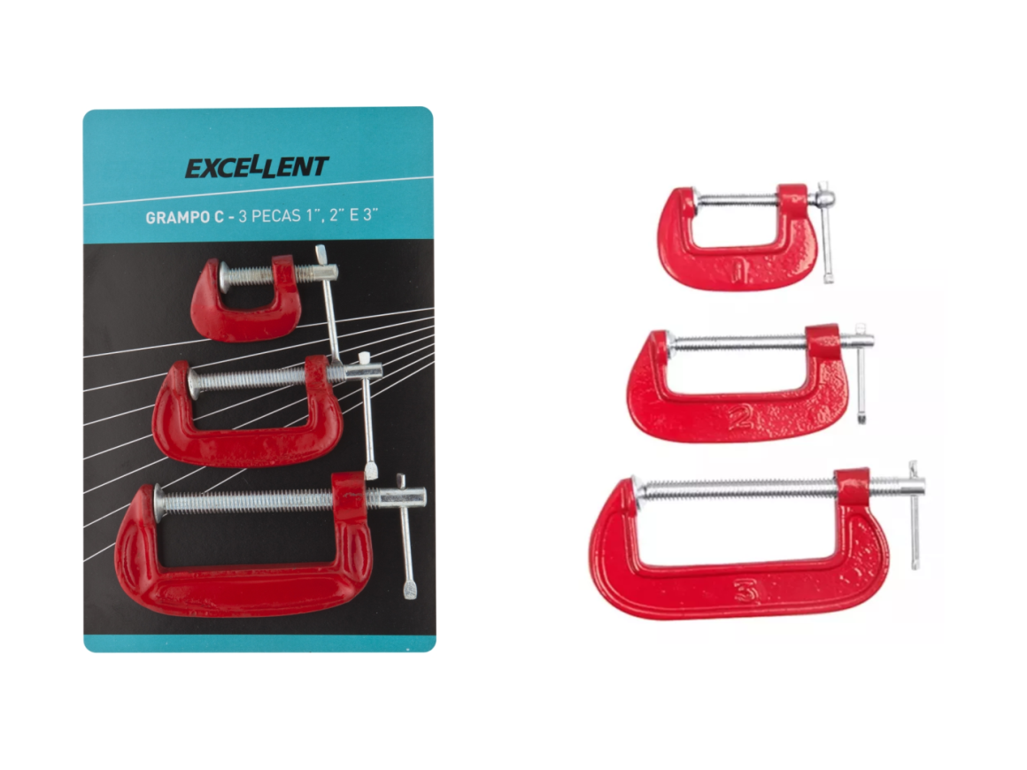GRAMPO SARGENTO TIPO C COM 3PÇS 1" 2" 3" EDA 3KW