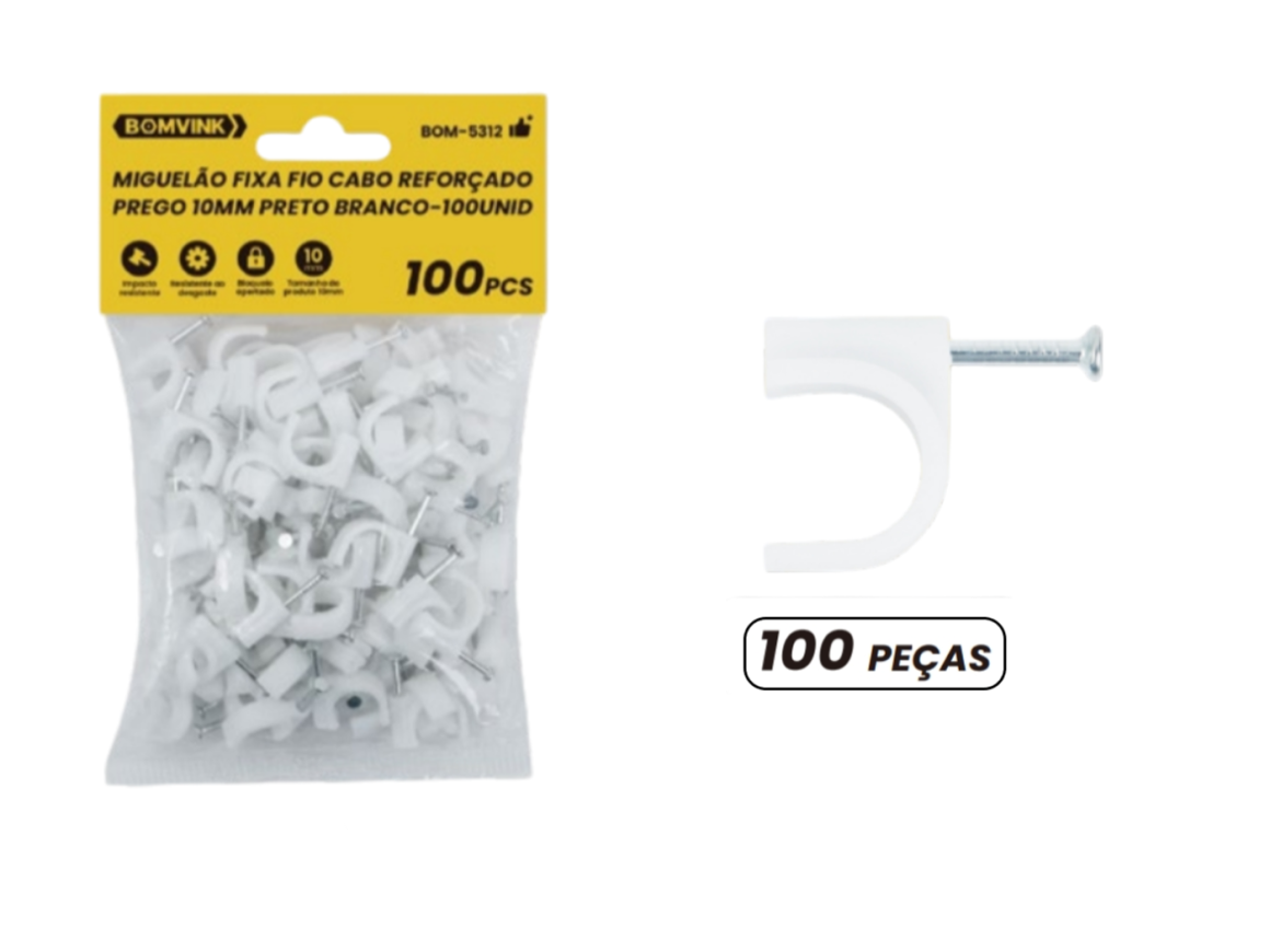 FIXADOR DE FIOS MIGUELÃO COM 100 PCS 10MM BOM-5312