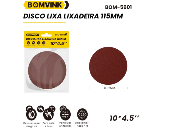 DISCO DE LIXA COM VELCRO MISTA C/10 PCS 4.5" 115MM BOM-5601