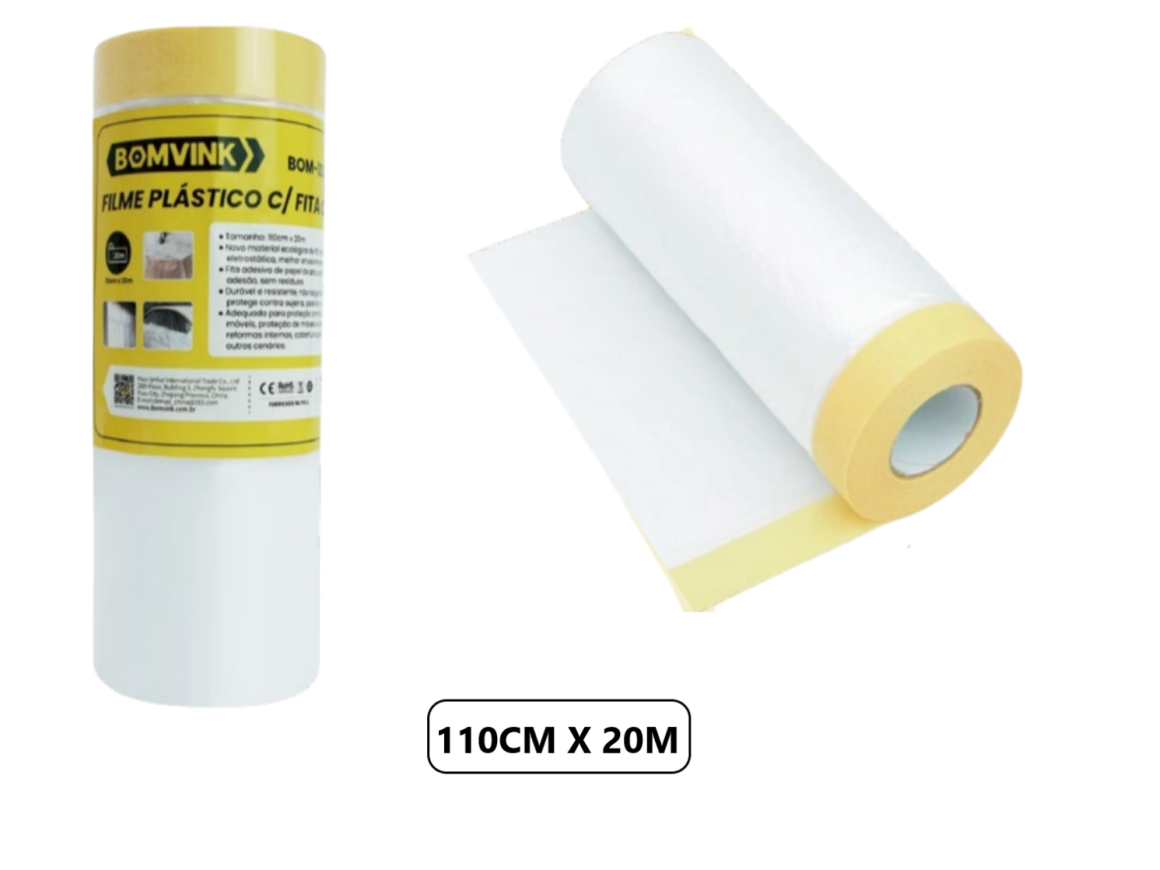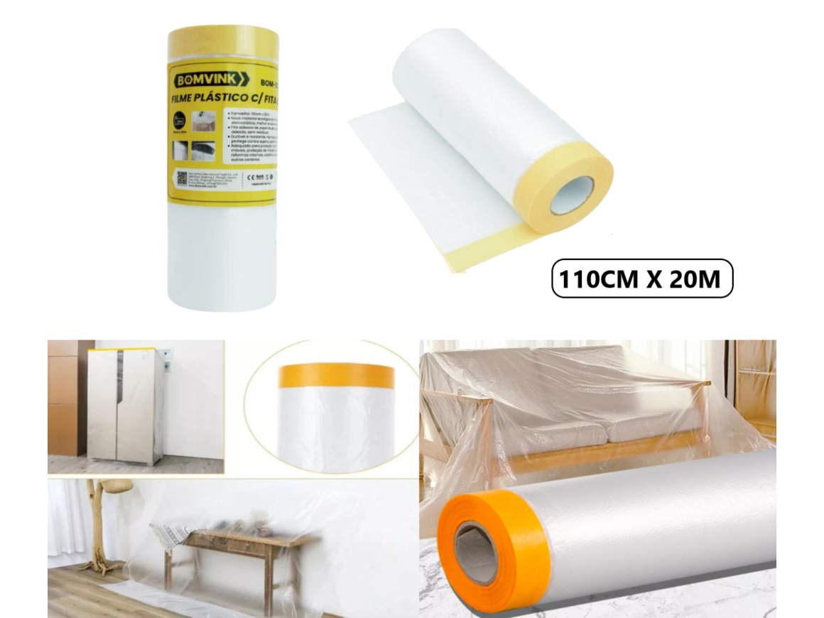 FILME PLASTICO COM FITA CREPE PARA COBRIR MÓVEIS 110CM X 20M BOM-1328