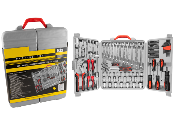 KIT FERRAMENTAS MALETA SOQUETES E CATRACA COM 110 PÇS EDA 9SR