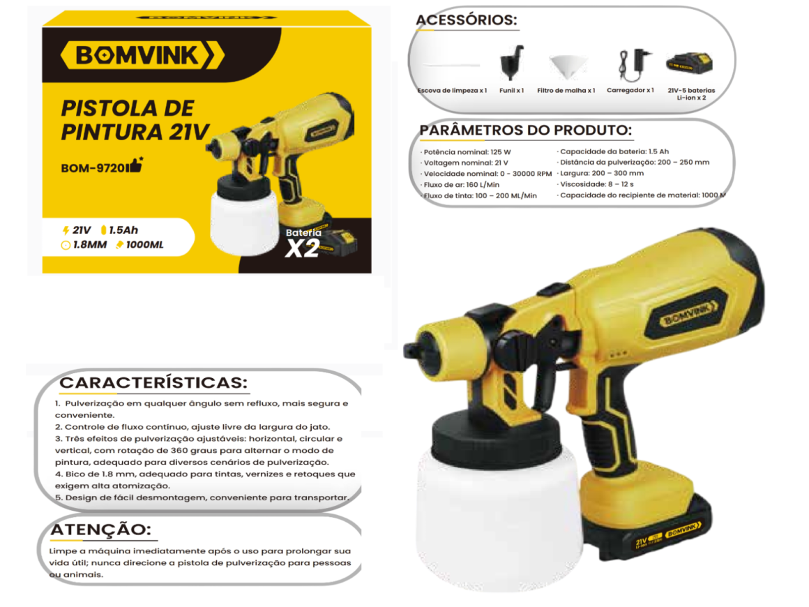 PISTOLA DE PINTURA PULVERIZADORA COM 2 BATERIA 21V 125W BOM-9720