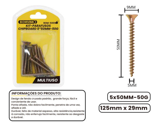 KIT DE PARAFUSO CHIPBOARD 5*50MM COM 10 PCS BOM-5301