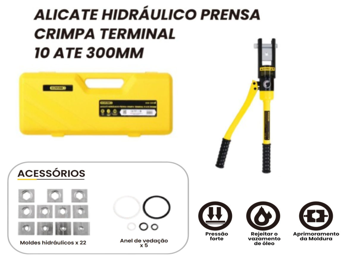 ALICATE HIDRAULICO PRENSA E CRIMPA TERMINAL 10 ATÉ 300MM BOM-3629