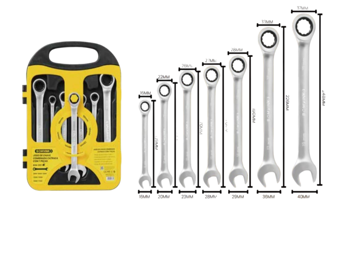 CHAVE COMBINADA CATRACADA C/ 7 PCS 8-19 MM CABEÇA FIXA BOM-3213