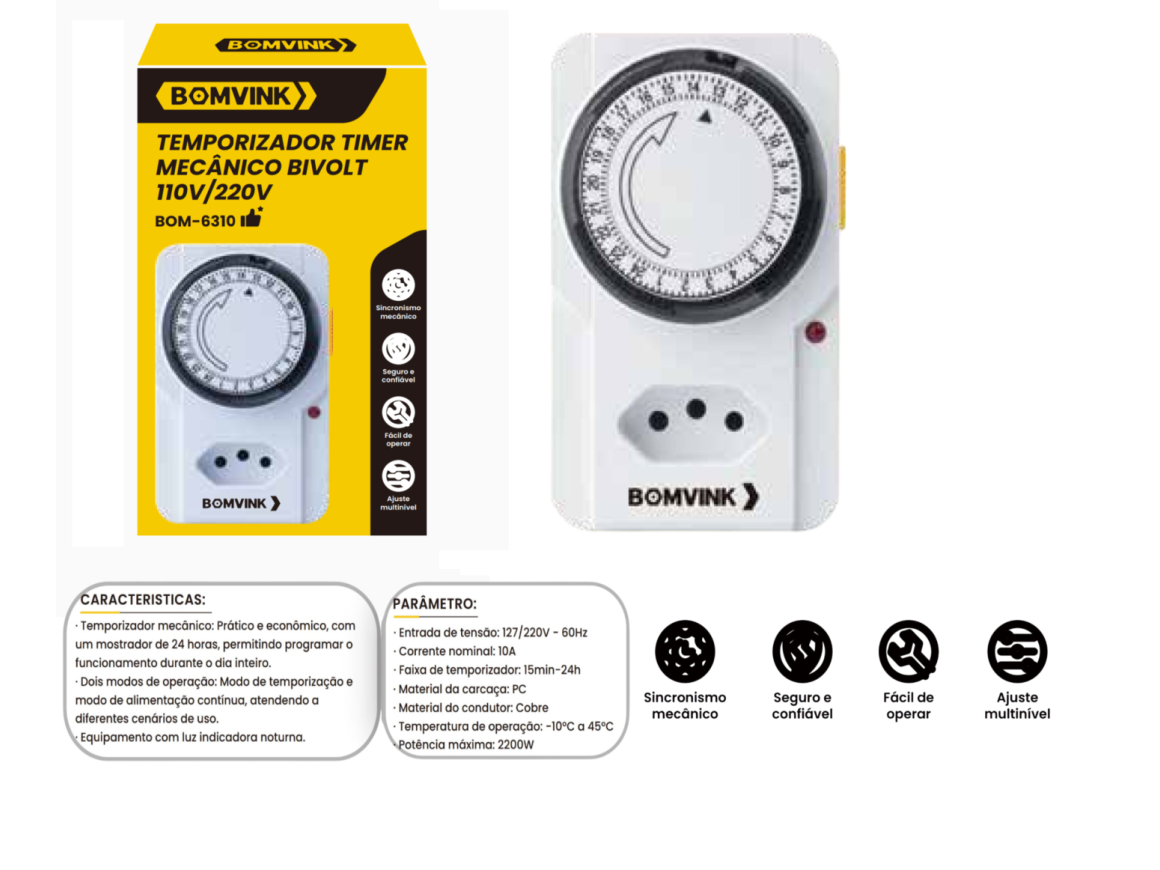 TEMPORIZADOR TIMER MECANICO BIVOLT BOM-6310