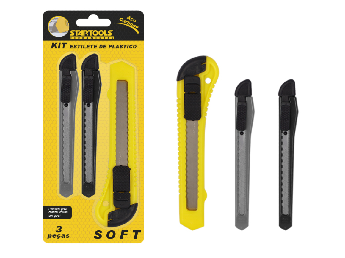 ESTILETE DE PLASTICO C/ LAMINA DE METAL COM 3PCS STARTOOLS AR0633
