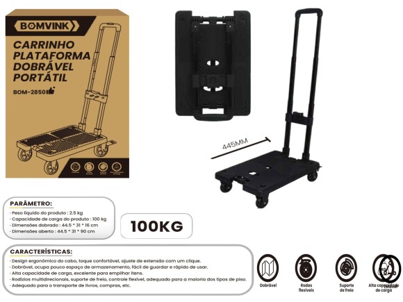 CARRINHO PLATFORMA DOBRAVÉL CARGA MAXIMA ATÉ 100 KG BOM-2850