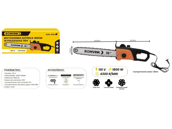 MOTOSSERRA ELETRICA 16" POLEGADAS 110V 1800W BOM-9591