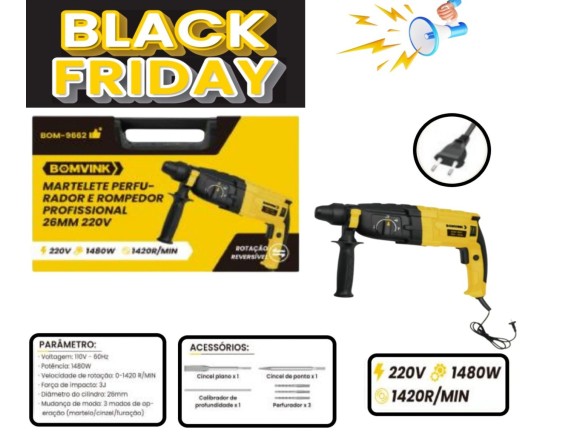 O Martelete Perfurador Bomvink BOM-9662 é a ferramenta ideal para quem busca alto desempenho em perfurações exigentes. Com motor potente de 1480W e energia de impacto de 3 Joules, ele garante eficiência e rapidez mesmo nos trabalhos mais pesados. Projetado para profissionais como instaladores, eletricistas, encanadores e também para o uso doméstico, ele oferece versatilidade e força em qualquer aplicação.