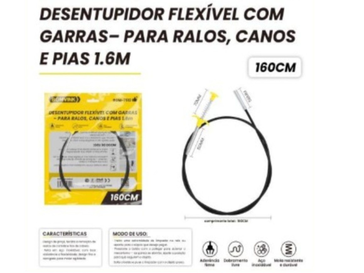 DESINTUPIDOR FLEXIVEL COM GARRA 1.6 MTS PARA CONOS PIAS BOM-7512