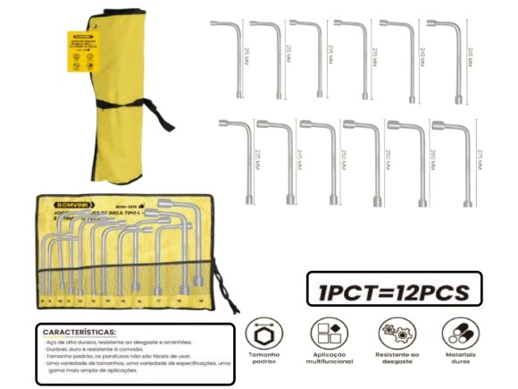JOGO CHAVE BIELA TIPO L C/12 PÇS DE 8 A 19MM BOM-3219