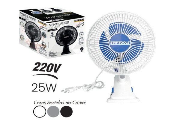 VENTILADOR CLIPE DE MESA 220V 25W 22CM 2 VELOCIDADES OCILANTE STARTOOLS AR0973