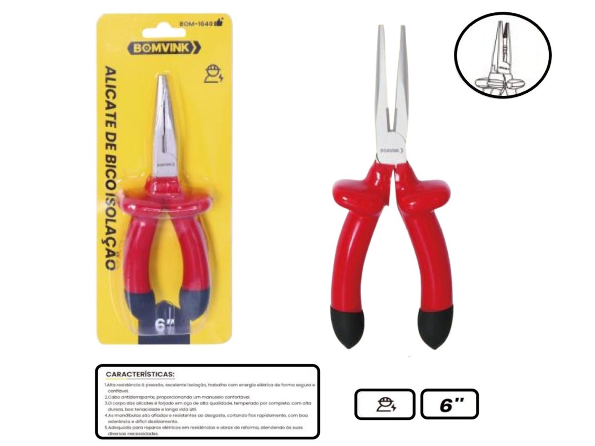 ALICATE DE BICO 6" CABO C/ ISOLAMENTO P/ 1000V BOM-1640