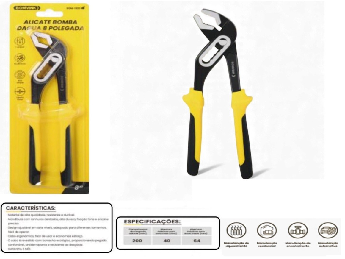 ALICATE BOMBA D"AGUA 8" CABO EMBORRACHADO BOM-1620